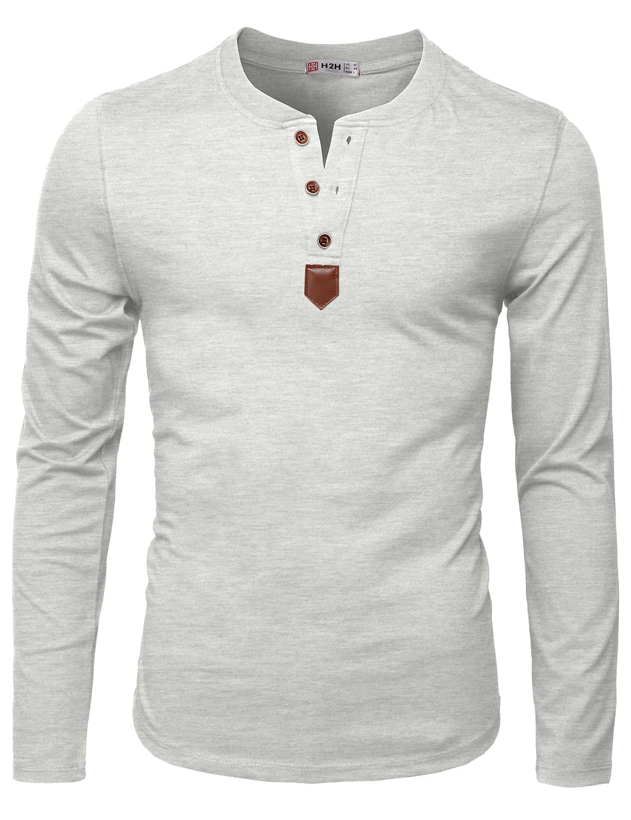 H2H Men Casual Slim Fit Spandex Blended Henley T-Shirt Long Sleeve