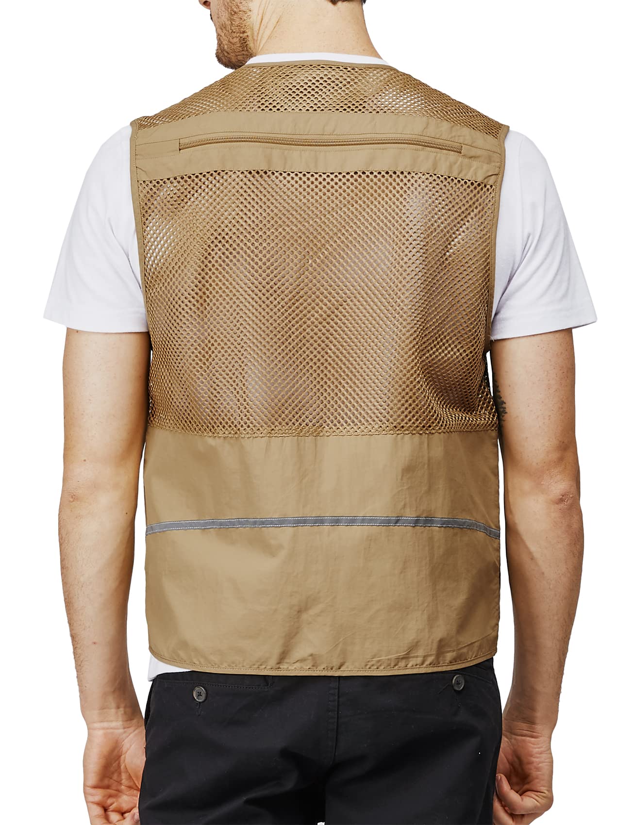 - Features ; Zipper front, regular fit, v neck, solid color, mutiple pockets, lightweight, quick dry, breathable. back side expose big mesh pocket with "3M Reflective Tape". And make you more cool in summer hot days. Also "D" rings front and adjustable straps on the both waist sides. Practical and comfortable.