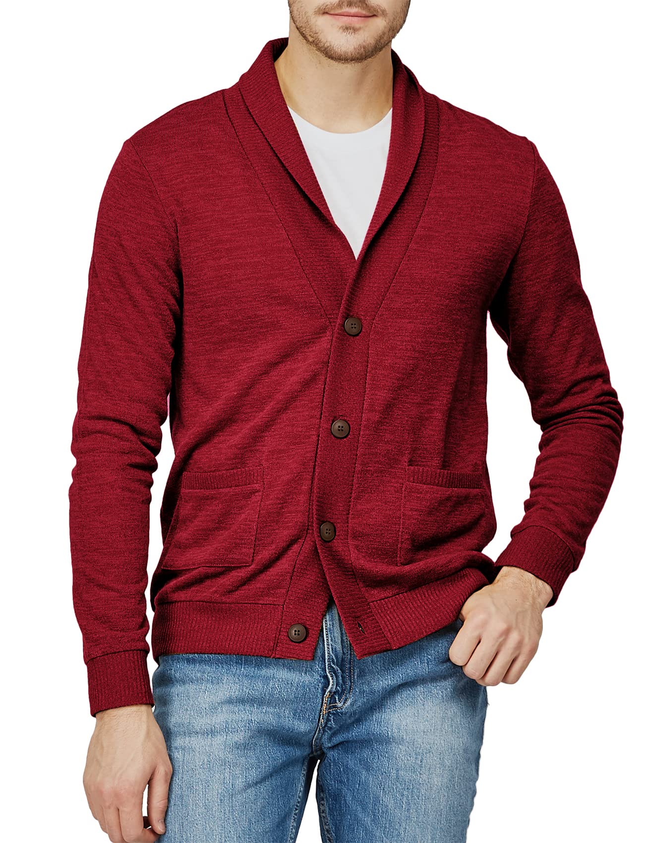 H2H Mens Casual Comfortable Fit Cardigan Sweater Shawl Collar Soft Fabric