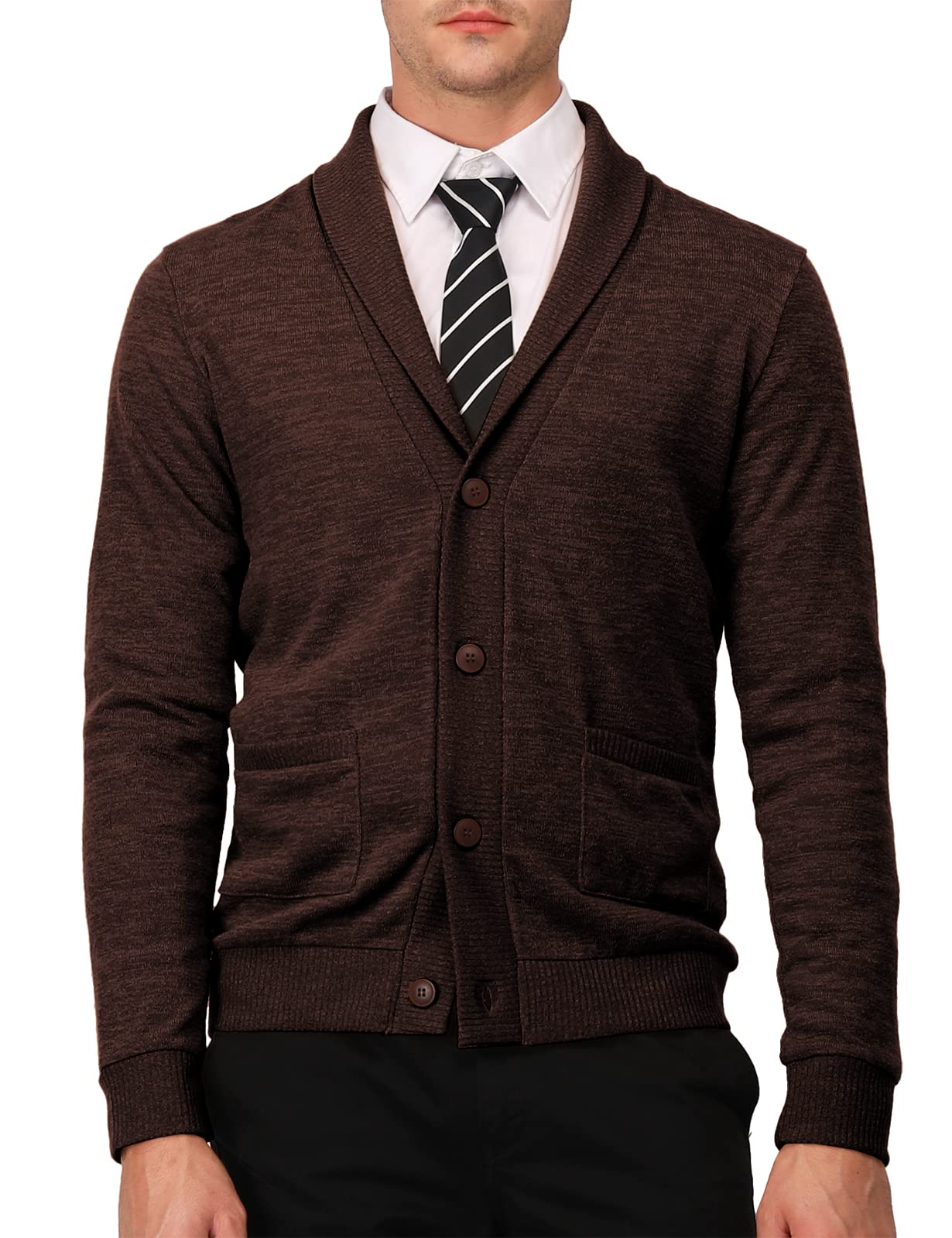 H2H Mens Casual Comfortable Fit Cardigan Sweater Shawl Collar Soft Fabric—