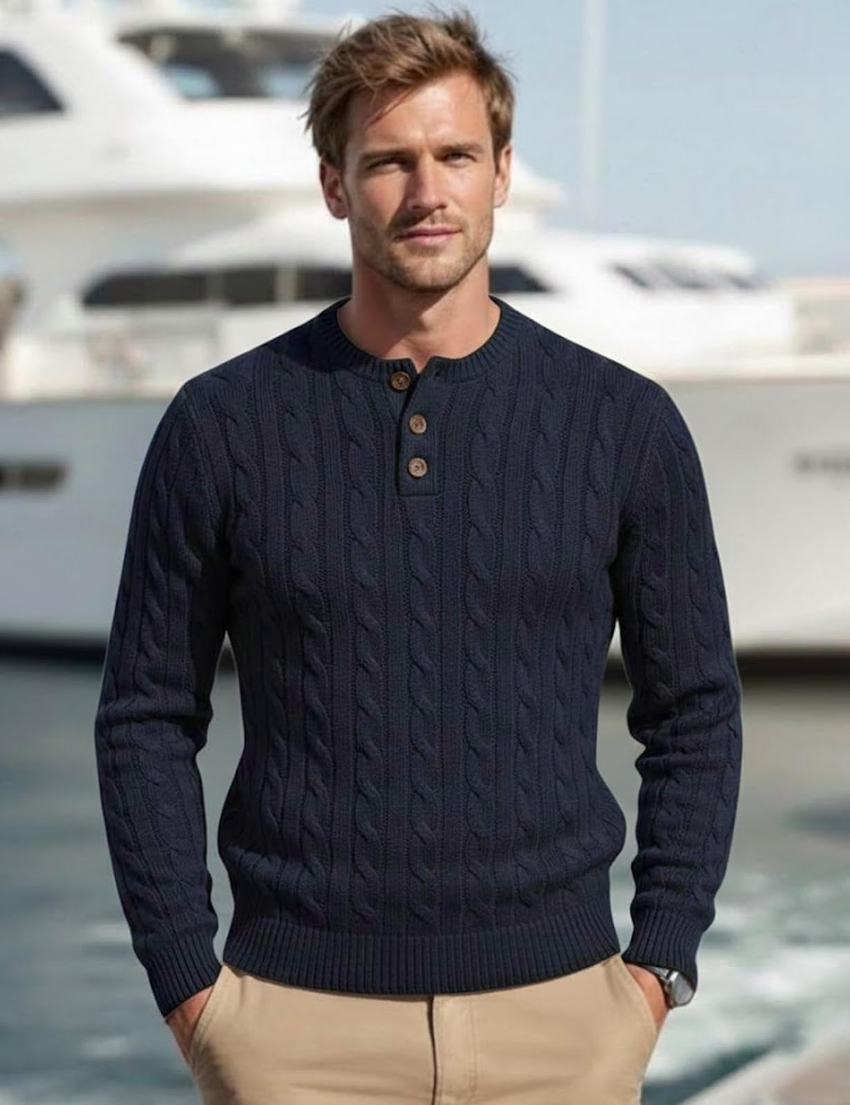 H2H Mens Casual Slim Fit Pullover Sweaters Long Sleeve Cable Knitted Sweater with Button Closure—