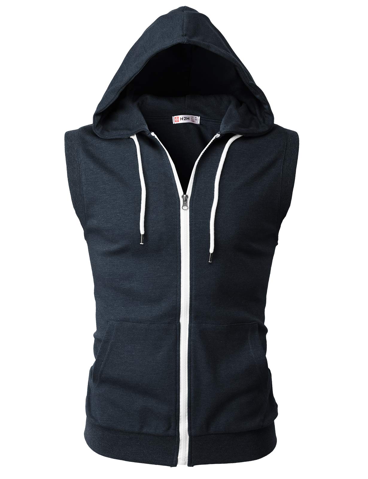 H2H Mens Casual Slim Fit Zip-up Sleeveless Hoodie Lightweight Workout Tank Tops Gym Hoodies