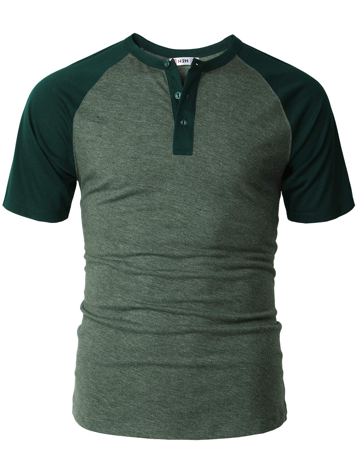 H2H Mens Henley - Raglan Short Sleeve Casual Slim Fit T-Shirts