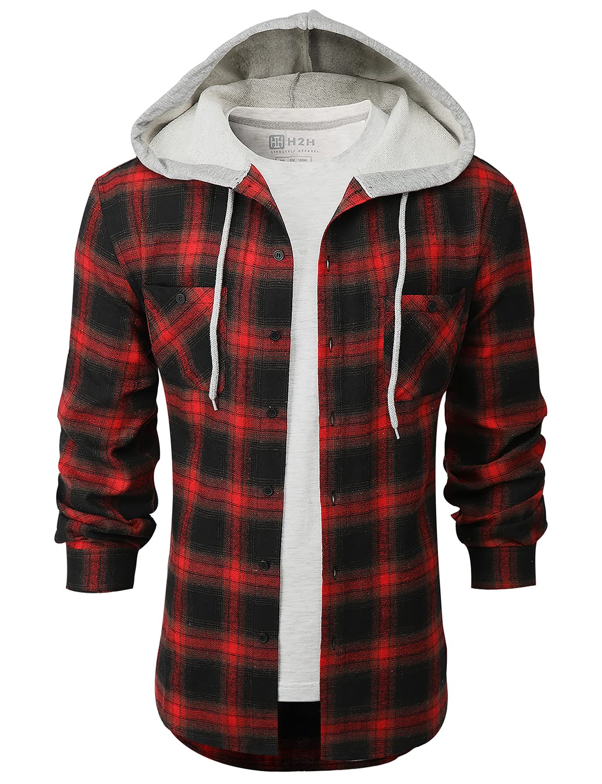 H2H Mens Plaid Hoodie Shirts Jacket Casual Shirt - Lightweght, Comfortable