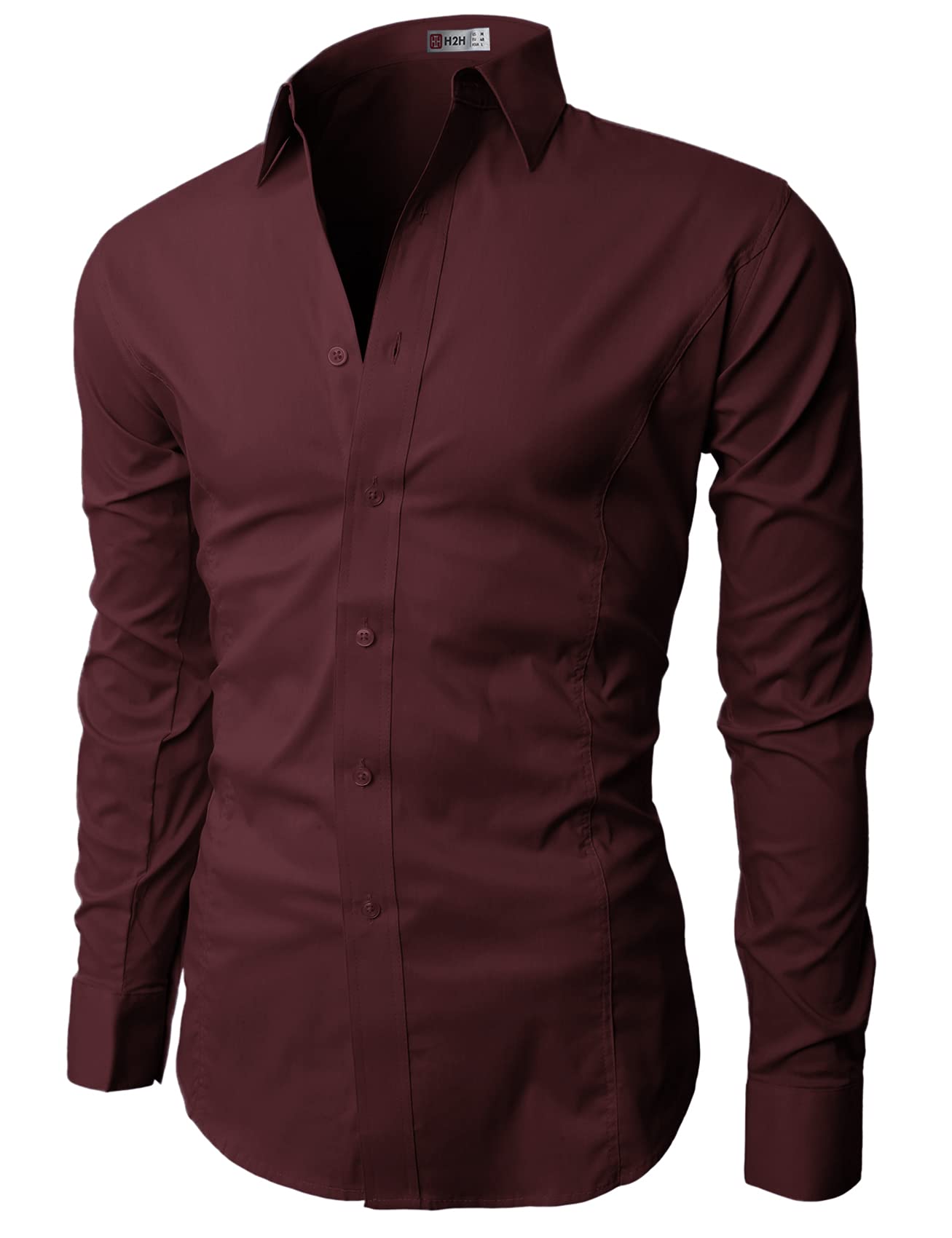 H2H Mens Slim Fit Dress Shirts Stretch Long Sleeve Basic Formal Shirts Solid Business Casual Button Down Shirts