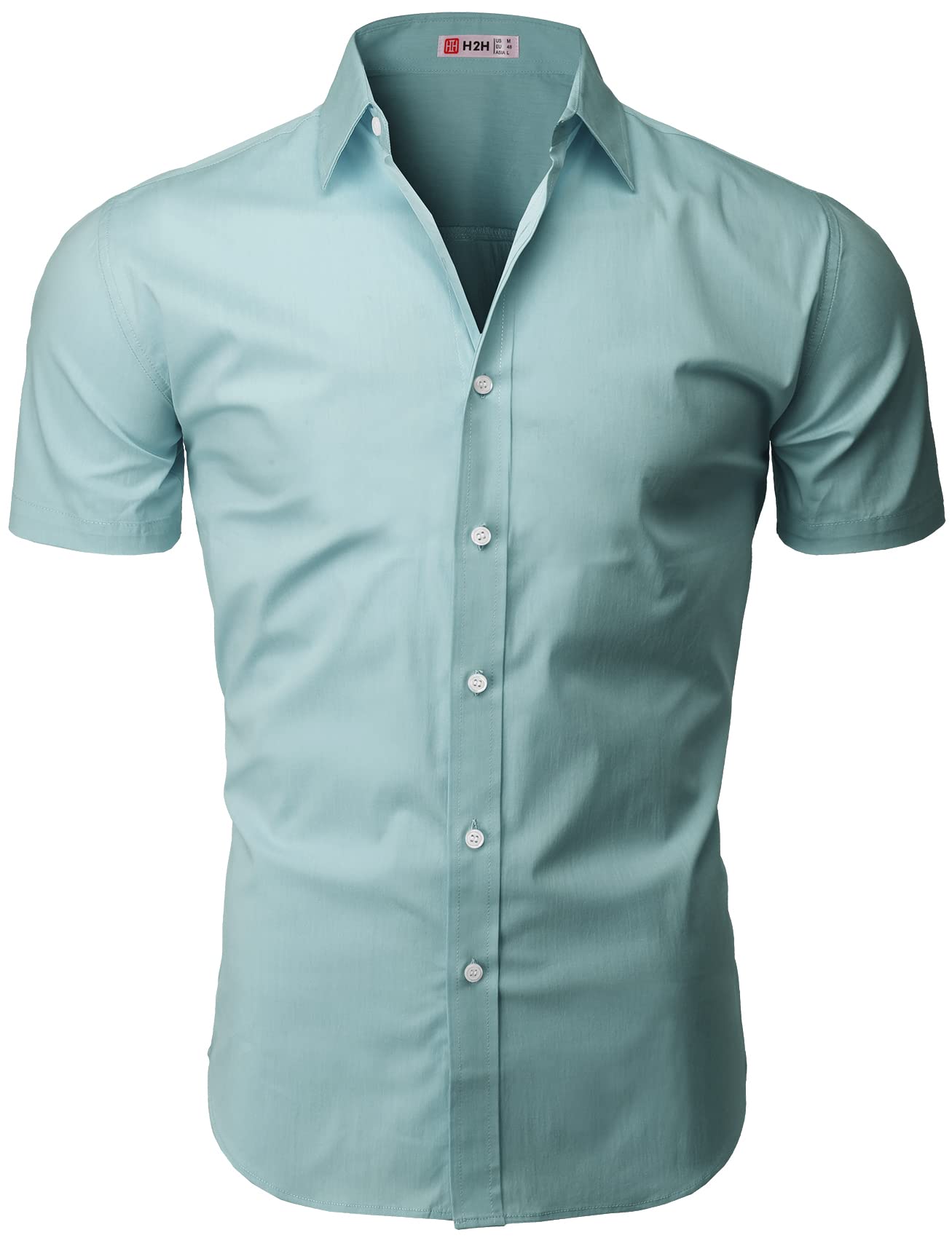 H2H Mens Slim Fit Short Sleeve Botton Down Shirts Casual Business Uniform