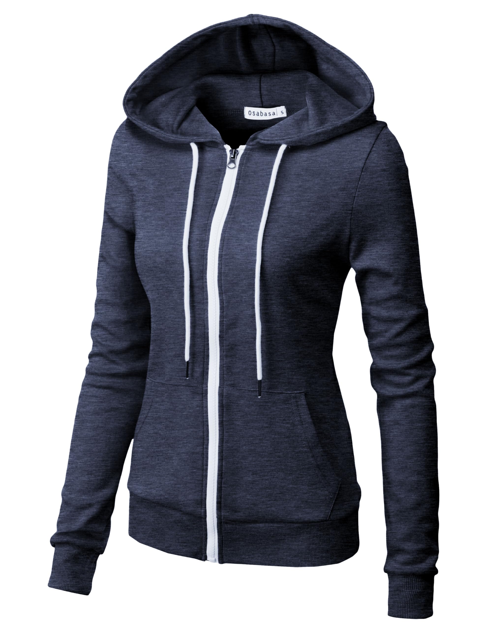 OSABASA Women's Slim Fit Zip Up Hoodie Lightweight Long Sleeve Kangaroo Pocket Basic Casual wear